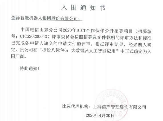 近日,中國(guó)聯(lián)通山東省分公司、中國(guó)電信山東分公司分別對(duì)外公示了2020DICT合作伙伴公開(kāi)招募項(xiàng)目、2020年專(zhuān)業(yè)類(lèi) 5G 應(yīng)用公開(kāi)市場(chǎng)供應(yīng)商招募項(xiàng)目入圍單位名單。創(chuàng)澤集團(tuán)從眾多投標(biāo)商家中脫穎而出,接連中標(biāo)入圍。 另外,前段時(shí)間創(chuàng)澤集團(tuán)已與中國(guó)移動(dòng)已經(jīng)成立了“5G+AI聯(lián)合創(chuàng)新實(shí)驗(yàn)室”,目前和中國(guó)移動(dòng)的智慧銀行、智慧醫(yī)院項(xiàng)目正在有序推進(jìn)中。