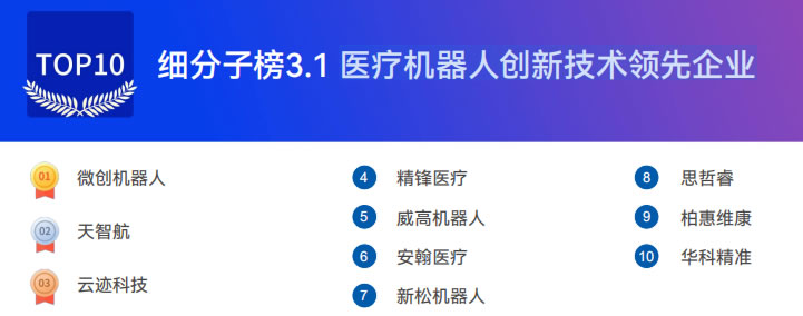 2025醫(yī)療機(jī)器人創(chuàng)新技術(shù)領(lǐng)先企業(yè)top