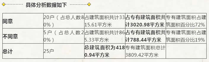 2016年1月10日,湛江市霞山區(qū)某小區(qū)就召開了業(yè)主大會,并作出決議,確認(rèn)該小區(qū)業(yè)主共有66戶,其中同意加裝小區(qū)電梯的業(yè)主數(shù)為52戶(東門總共25戶,其中20戶同意加裝;中門總共17戶,其中9戶同意加裝;西門總共24戶,其中23戶同意加裝),該小區(qū)業(yè)主大會會議決定:在該小區(qū)東門、西門各加裝一臺電梯。2016年11月18日,根據(jù)該小區(qū)的申請,湛江規(guī)劃局依法頒布了在該小區(qū)東門、西門各加裝一臺電梯的《建設(shè)工程規(guī)劃許可證》。小區(qū)西門的電梯安裝較為順利,但東門不同意安裝的5位業(yè)主對在東門安裝電梯的工程實(shí)施中百般阻撓,將車輛停放在施工現(xiàn)場以阻礙施工。經(jīng)派出所、社區(qū)法律顧問等多方調(diào)解無效后,2017年9月11日,東門同意安裝的李康林等20人將不同意安裝的戴戈等5人訴上法庭,要求被告移走障礙物,不得阻止電梯安裝。 經(jīng)法院查明,涉及本案的業(yè)主共有25戶,分為三種戶型,E號戶型的建筑面積為182.78平方米、專有建筑面積為166.54平方米,F(xiàn)號戶型的建筑面積為144.48平方米、專有建筑面積為131.64平方米,G號戶型的建筑面積為172.51平方米、專有建筑面積為157.18平方米。同意加裝電梯的戶主有20戶,其中E號戶型有6戶,F(xiàn)號戶型有7戶,G號戶型有7戶,占建筑面積共計(jì)3315.61平方米,占專有建筑面積共計(jì)3020.98平方米。不同意加裝電梯的戶主有5戶,其中E號戶型有3戶,F(xiàn)號戶型有1戶,G號戶型有1戶,占建筑面積共計(jì)865.33平方米,占專有建筑面積共計(jì)788.44平方米。涉案樓房東門業(yè)主的總建筑面積為4180.94平方米。