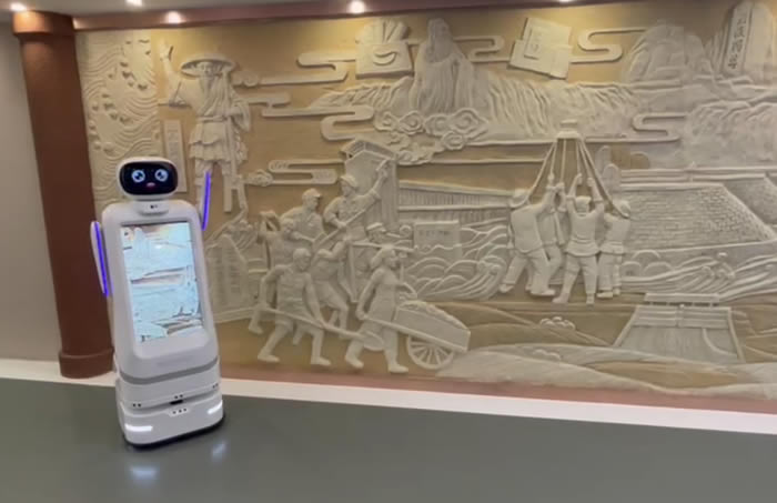 在博物館的前廳,機器人可以實現迎賓接待的服務工作、引L觀眾到達指定的展廳位置,機器人能隨時隨地提供咨詢和展品講解服務。機器人還可在博物館展廳內設置多條參觀路線,可實現觀眾邊參觀、機器人邊講解的功能。講解過程中,觀眾有疑問和問題都能隨時與機器人互動咨詢。機器人回答嘉賓提問的同時還能展示視頻或圖片進行解說,帶L一波觀眾參觀講解完畢后,會重新回到接待點迎接下一波觀眾參觀。